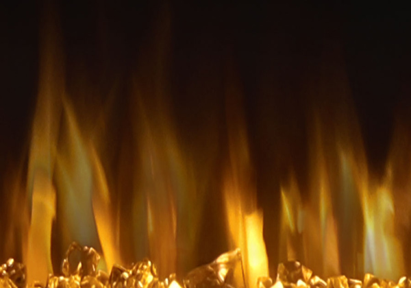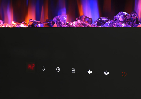 - Crystal clear cube ember bed accents the flame