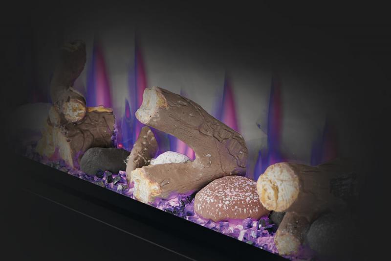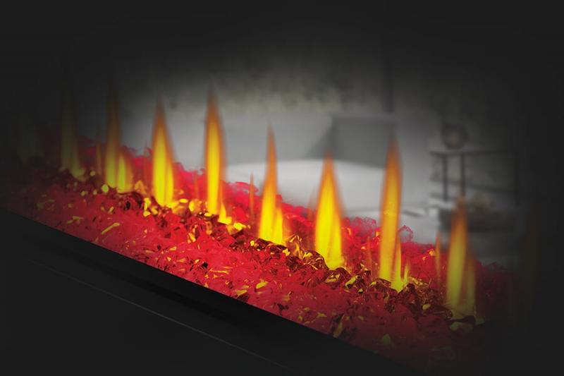 - Fifteen different ember bed color options; orange, red, blue, yellow, green, purple, sky blue, purple/red, white, pink, yellow/green, ice blue, orange/red, light green, magenta plus an autocycle setting