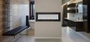 The CLEARion™ Elite 50 See Through Electric Fireplace is the first ever truly see through electric fireplace. A CLEARion™ Elite Electric Fireplace is hardwired directly into your electrical system creating a seamlessly relaxing environment in two rooms. This unique fireplace can heat separate rooms at different rates, increasing the comfort of two spaces at the same time. Separate remotes ensure comfort in every room. A privacy mode allows you to change the transparency when solitude is desired. Customize this fireplace with either a sparkling crystal media ember bed or the hand-painted logs with Topaz glass embers; both sets are included. Illuminated from below by LED, colour-changing lights, both ember bed styles glow with a luxurious feel that can be seen from both rooms.
