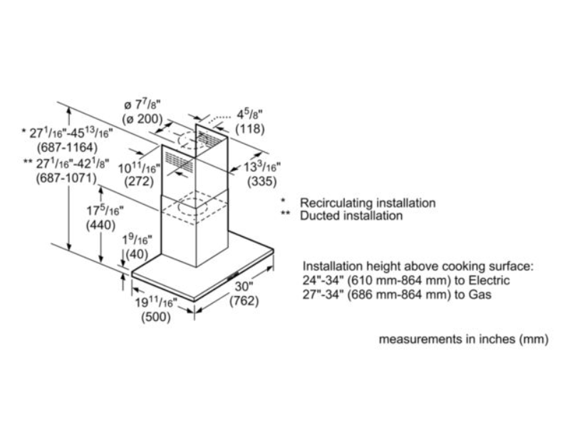 | Operating Mode | Convertable: Ducted / Recirculating |