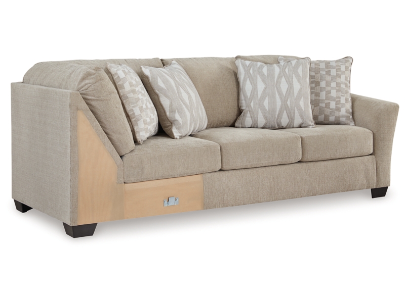 This right-arm facing sofa with corner wedge is made with polyester upholstery. Pairs with other items in the series to make a sectional.