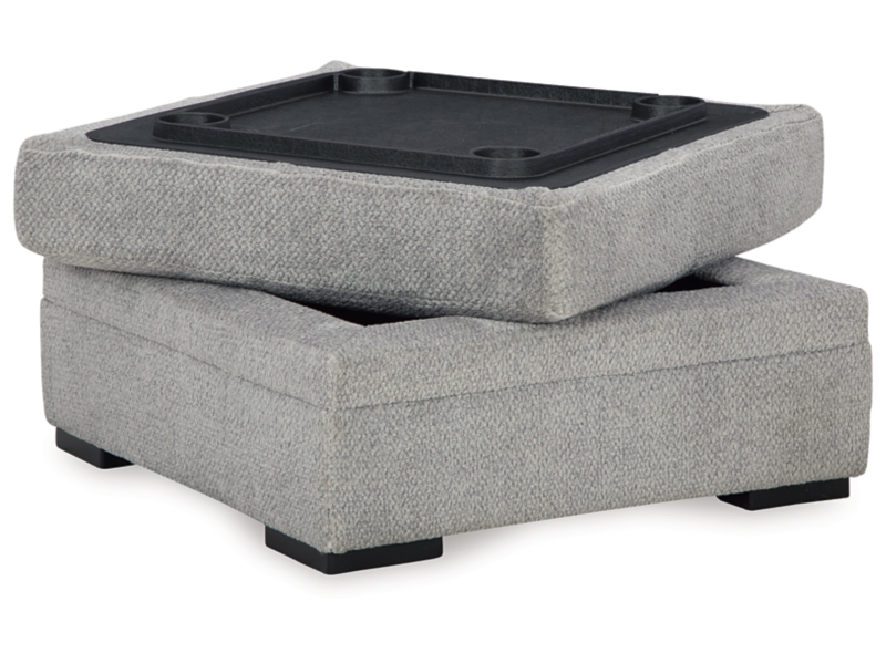 This ottoman with storage makes family movie nights and get-togethers with friends all the more cozy. Simply add it to your existing seating area as a chic footrest. It’s complete with a trendy gray hue for the contemporary style you crave. Use the easy-to-access storage space, or flip the lid to reveal handy cup holders. It's time to sit back and relax—this functional piece is ready to indulge you with everyday comfort.