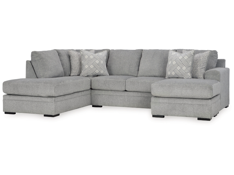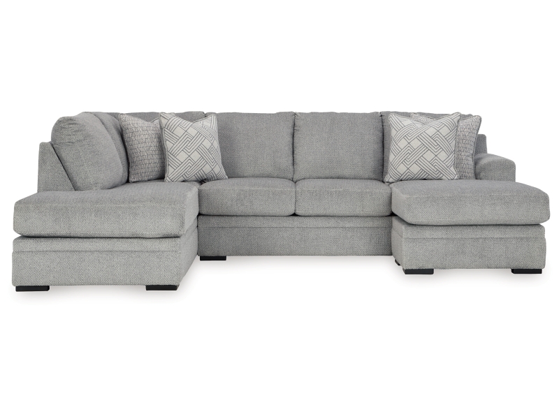 Don’t be limited by a lack of space. This sectional makes family movie nights and get-togethers with friends all the more cozy. With its double-chaise configuration, everyone has a spot to lounge. A trendy gray hue offers the contemporary style you crave. So sit back and relax—this functional piece is ready to indulge you with everyday comfort.
