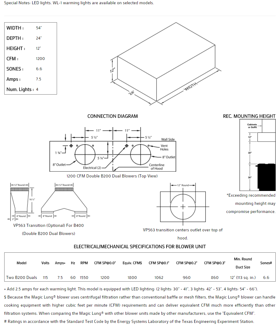 54" Vent-A-Hood Premier Magic Lung Professional Or Standard Wall Mounted Hood - CWH454SS