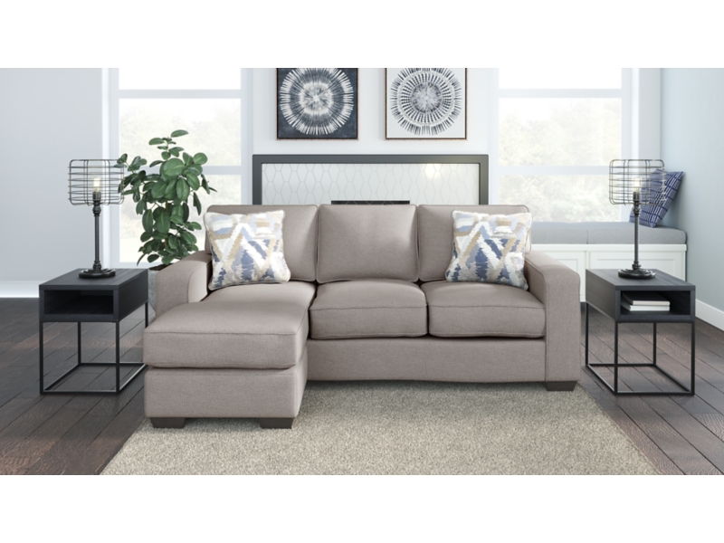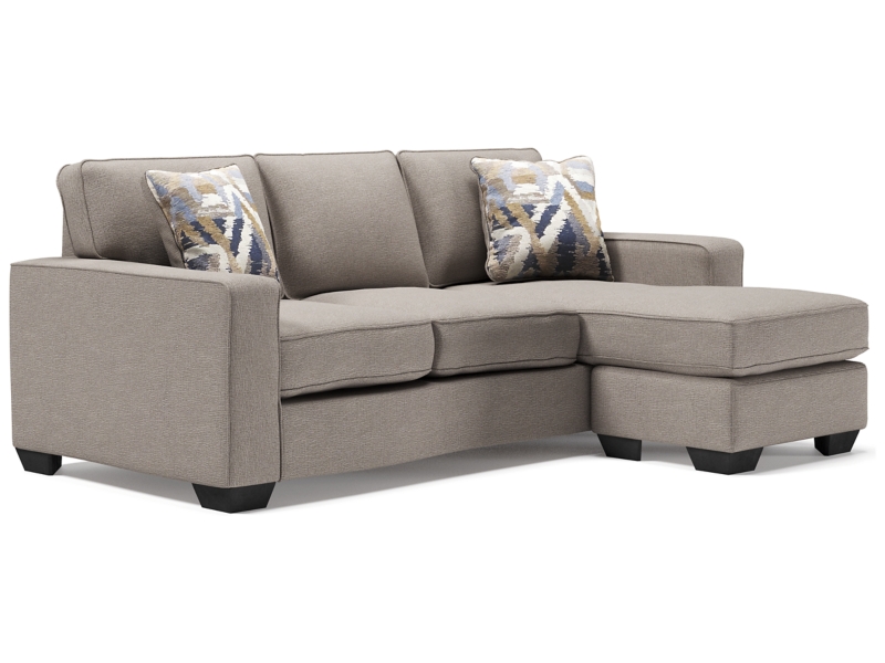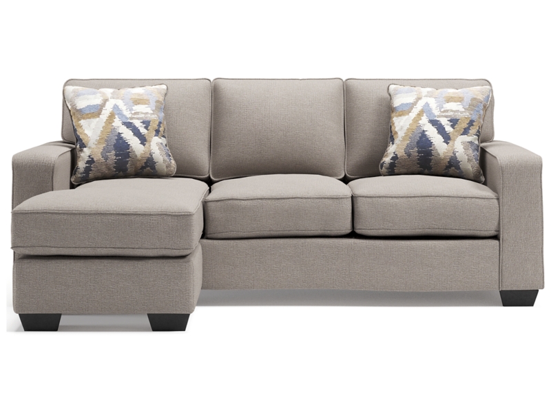 Make your living space that much more livable with this sofa chaise. You’re sure to love its L-shaped design that makes it all too enticing to kick up your heels and relax. The fact that this sofa chaise can be positioned with the chaise on the right or the left only adds to its appeal. And you can rest assured that its ultra-neutral upholstery with a textural chenille feel goes with anything and everything. Wide track armrests, box cushions and tapered feet lend a clean, contemporary aesthetic.