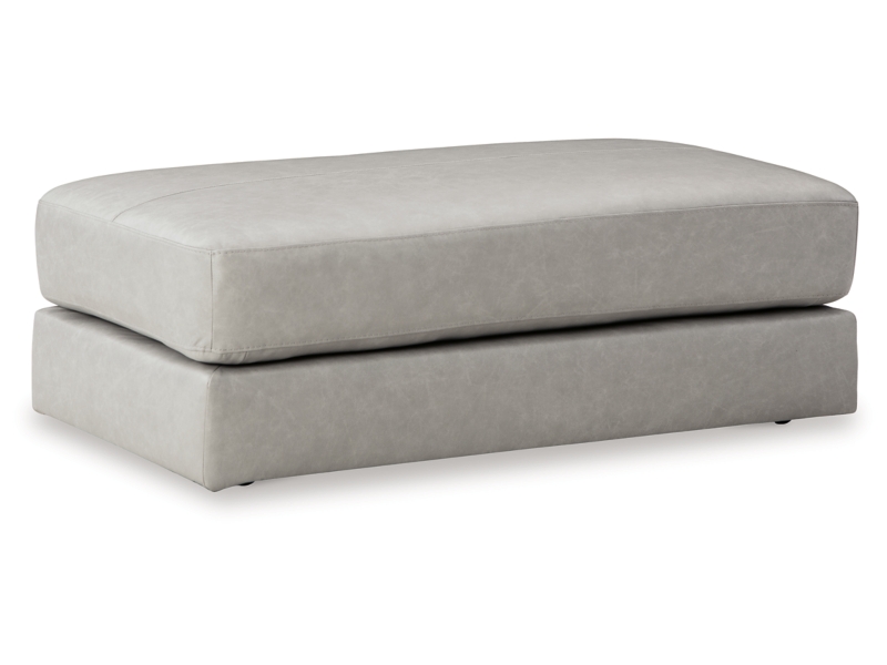 Keen on crisp, contemporary design? Adore the pleasure of leather? Look no further. This ottoman satisfies on every level. Richly textured and decadently supple, the cushion is wrapped with expertly matched leather and faux leather upholstery in an on-trend neutral tone. The ottoman's generous scale and clean-lined profile complete its simply chic appeal.