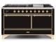 60" ILVE Majestic II Dual Fuel Liquid Propane Range with Brass Trim in Glossy Black - UM15FDQNS3/BKG LP
