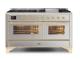 60" ILVE Majestic II Dual Fuel Liquid Propane Range with Brass Trim in Stainless Steel - UM15FDNS3/SSG LP