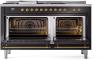 60" ILVE Nostalgie II Dual Fuel Liquid Propane Freestanding Range in Glossy Black with Brass Trim - UP60FSNMP/BKG LP