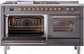 60" ILVE Nostalgie II Dual Fuel Liquid Propane Freestanding Range in Matte Graphite with Copper Trim - UP60FSNMP/MGP LP