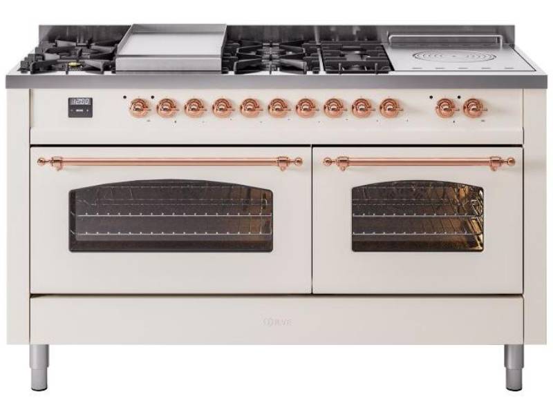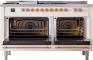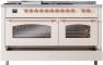 60" ILVE Nostalgie II Dual Fuel Natural Gas Freestanding Range in Antique White with Copper Trim - UP60FSNMP/AWP NG