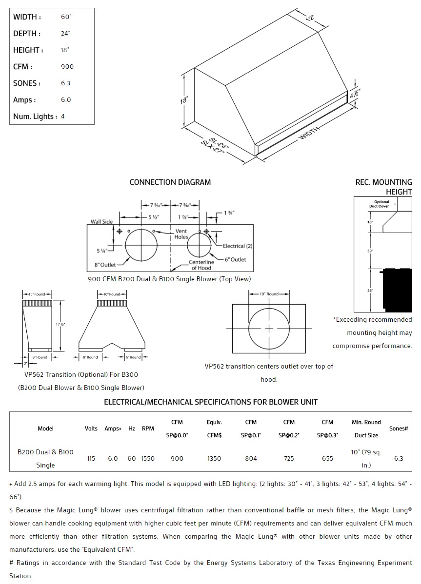 60" Vent-A-Hood Premier Magic Lung Professional Or Standard Wall Mounted Hood - SLH18360SS