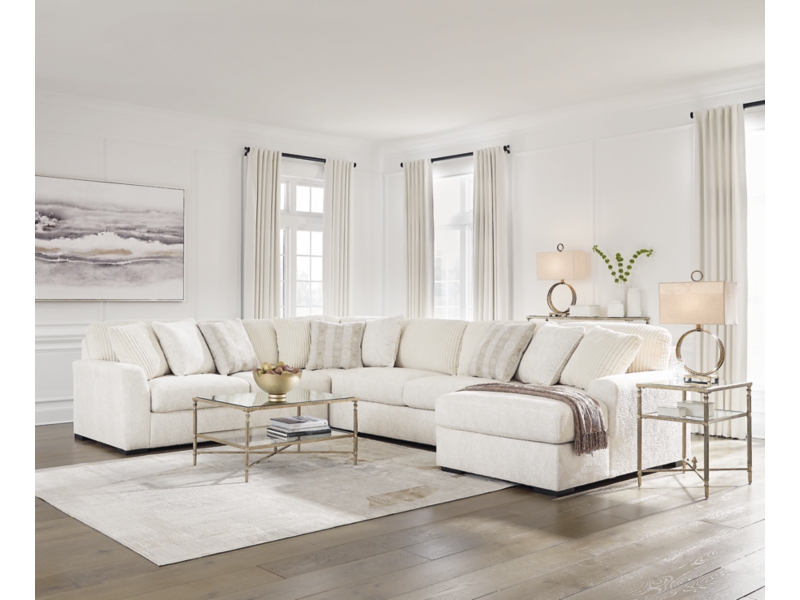 - Includes 4 pieces: right-arm facing corner chaise, wedge, armless loveseat and left-arm facing sofa