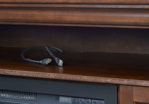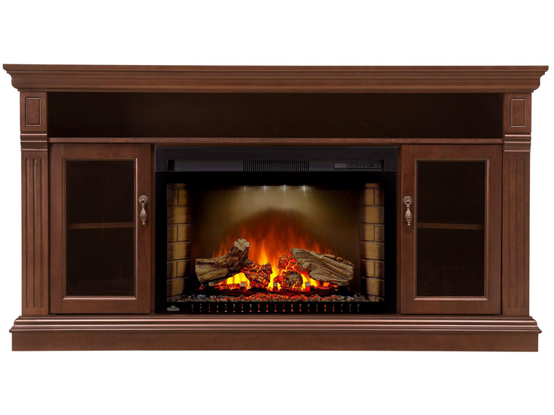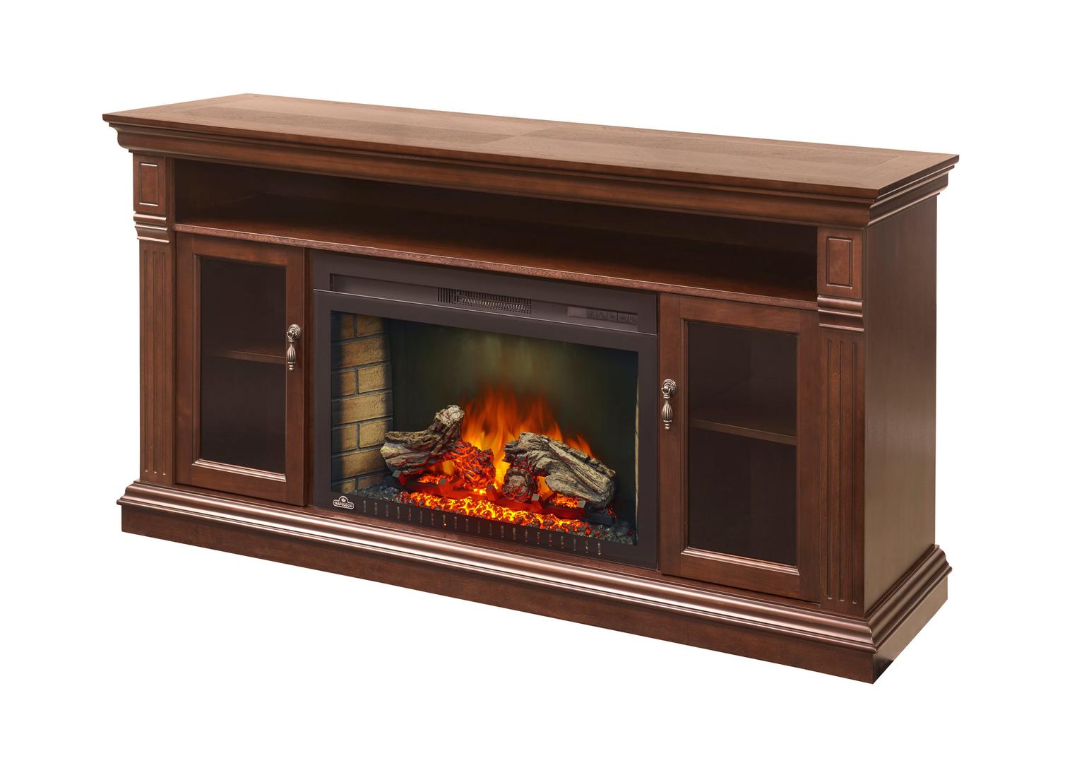 The Canterbury electric fireplace entertainment package by Napoleon is not only a functional entertainment center but an aesthetically captivating focal point. Crafted with a luxurious inlay with a diamond cut top, the Canterbury stands out from the crowd. Decorative side columns stand on a beautiful pedestal base, enclosing the Cinema™ 29 firebox. Other details like the decorative hardware and glass doors create a classic appearance to appease any taste.