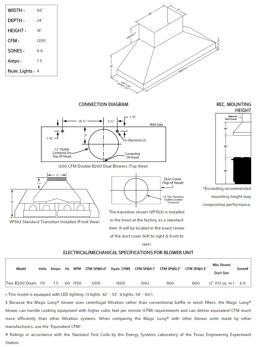 66" Vent-A-Hood Premier Magic Lung Euro Style Wall Mounted Hood - EPTH18466SS