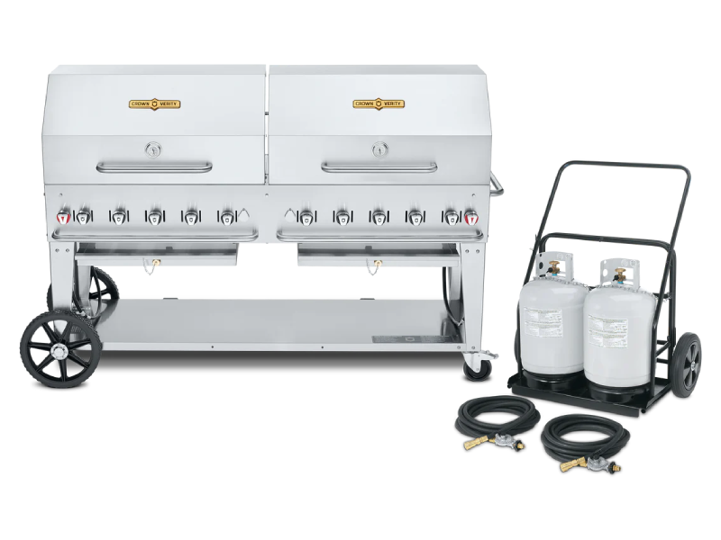 72" Crown Verity Liquide Propane Mobile Grill and Propane Cart with 2x Dome Pkg - CV-MCC-72RDP