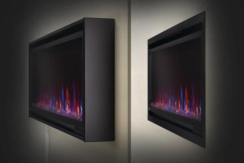 See the fire not the frame, this fireplace features a nearly frameless design to enhance the flame viewing experience.