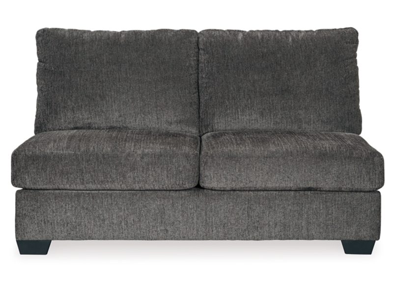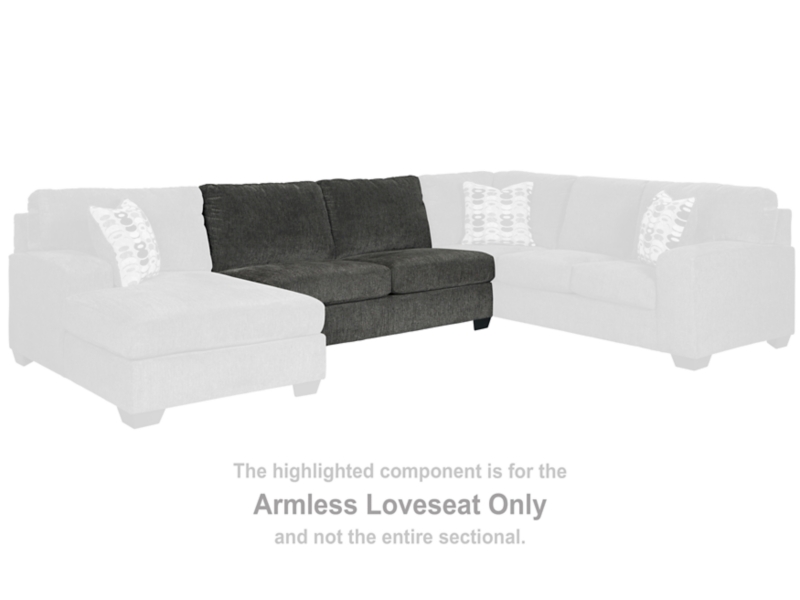 This armless loveseat is made with polyester upholstery. Pairs with other items in the series to make a sectional.