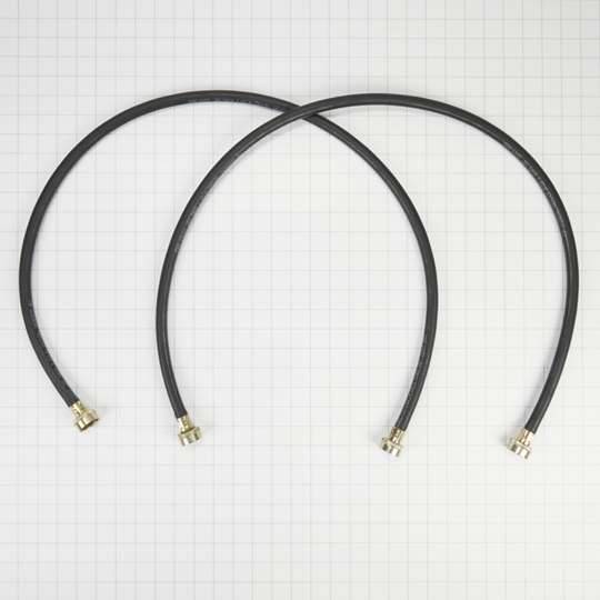- Set of (2) 4' black rubber hoses with brass connectors