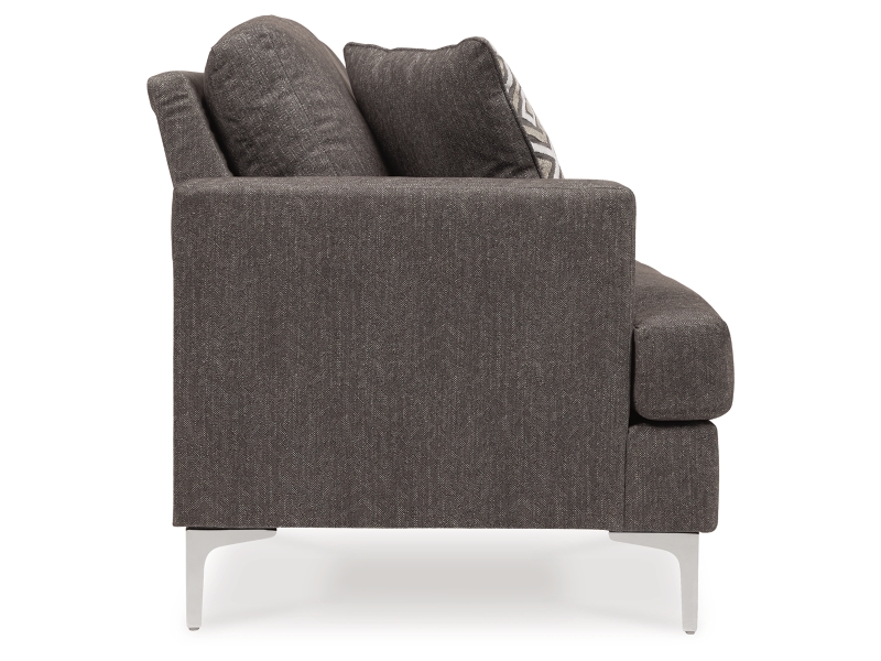 If modern subtlety is your style, settle into the heavenly texture of this sofa. The tremendously soft upholstery has a slight herringbone pattern that adds depth and richness to the java color. The metal accent legs elevate this piece as well as the style of it and add a decidedly chic sense to your space.