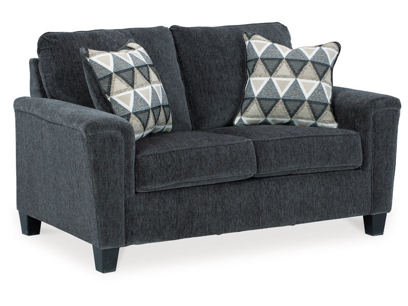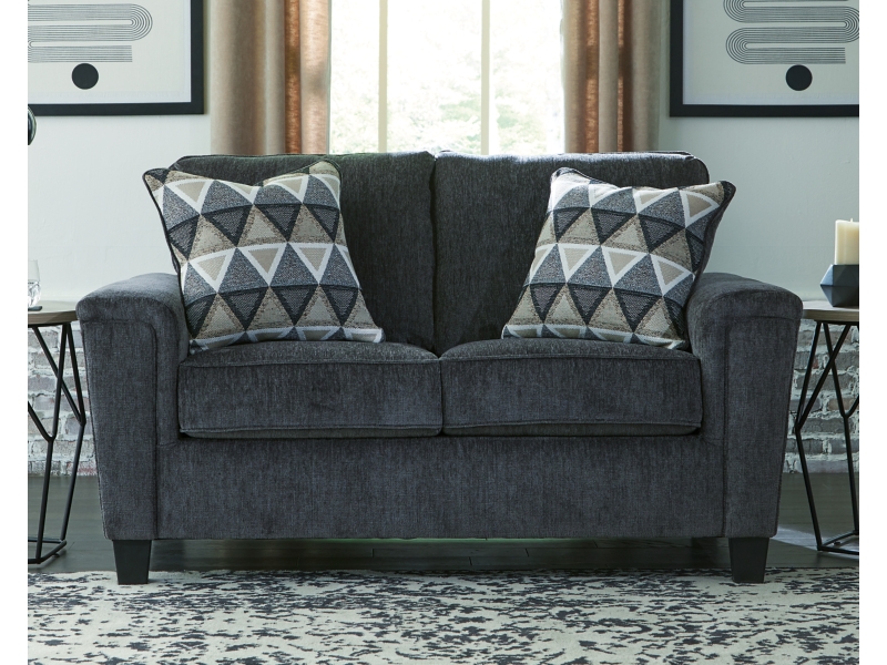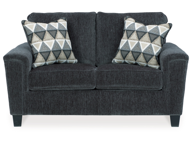 If you’re looking for a smokin’ hot look priced to entice, you’re sure to find this space-conscious, budget-conscious loveseat beautifully fits the bill. Covered in a smoke gray chenille upholstery loaded with plush texture, this less-is-more contemporary loveseat is dressed to impress with angled side profiling and track armrests wrapped with a layer of pillowy softness for that little something extra. Crisp and clean, the 2-over-2 cushion styling adds up to one sensational look.