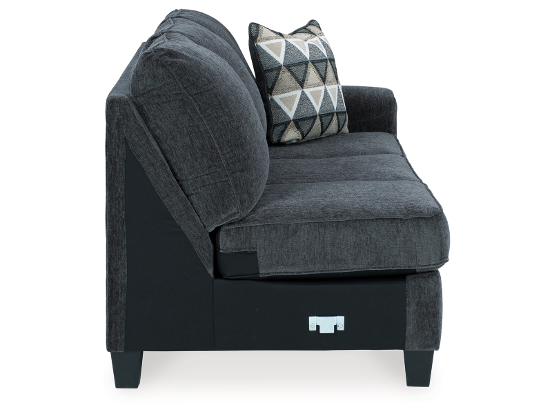 This right-arm facing sofa with corner wedge is made with polyester upholstery. Pairs with other items in the series to make a sectional.