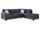 If style is the question, then this sectional is the answer. Sporting clean lines and sleek track arms, the decidedly contemporary profile is enhanced with plump cushioning and a chenille-feel upholstery that's so pleasing to the touch. Sure to play well with so many color schemes, this sectional in slate gray includes a pair of understated floral pattern pillows for fashionably fresh appeal.