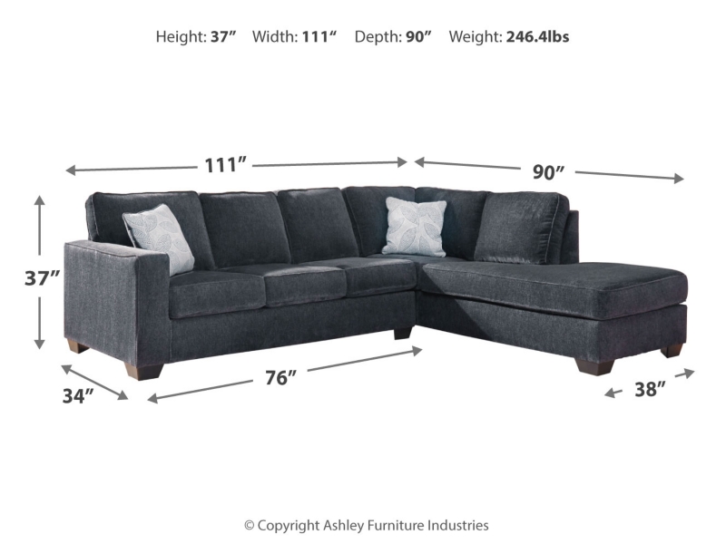 - Includes 2 pieces: right-arm facing corner chaise and left-arm facing sofa