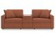 - Includes 3 modular pieces: left-arm facing corner chair, console with storage and right-arm facing corner chair