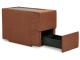 - Storage and audio consoles with plexiglass top and pull-out drawer; audio console includes built-in sound system with wireless connectivity, audio controls and USB charging