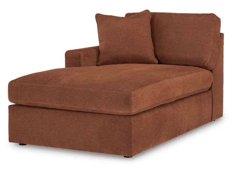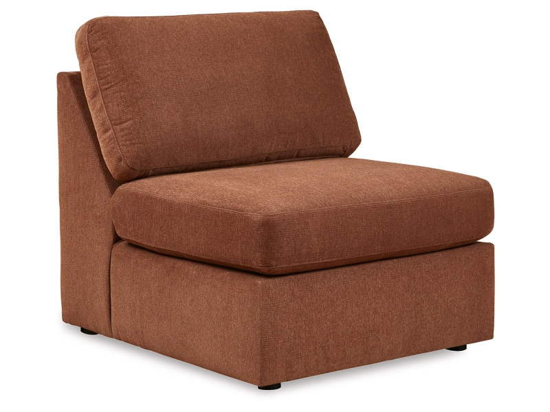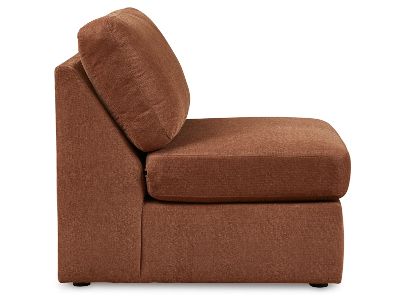 - Includes 5 modular pieces: left-arm facing corner chaise, console with audio system, right-arm facing corner chaise and 2 armless chairs