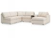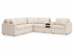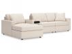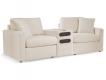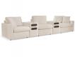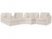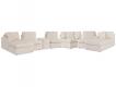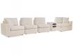 "Modmax" a true customizable modular sectional to fit any space. Featuring the Next-Gen Nuvella true performance fabric that offers high UV protection while being bleachable as well as cleanable. This is excellent for a high traffic areas. Loose reversible cushions, loose reversible back cushions with non-skid legs. All sides are completed (no connectors) so each piece can float anywhere in a room. Removable seat cushions, backs, and accent pillows with washable zippers for machine washing. One of the consoles are offered with bluetooth and audio sound system with pull out storage drawer and plexiglass top. The other is a console with pull out storage drawer and plexiglass top.