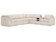 "Modmax" a true customizable modular sectional to fit any space. Featuring the Next-Gen Nuvella true performance fabric that offers high UV protection while being bleachable as well as cleanable. This is excellent for a high traffic areas. Loose reversible cushions, loose reversible back cushions with non-skid legs. All sides are completed (no connectors) so each piece can float anywhere in a room. Removable seat cushions, backs, and accent pillows with washable zippers for machine washing. One of the consoles are offered with bluetooth and audio sound system with pull out storage drawer and plexiglass top. The other is a console with pull out storage drawer and plexiglass top.