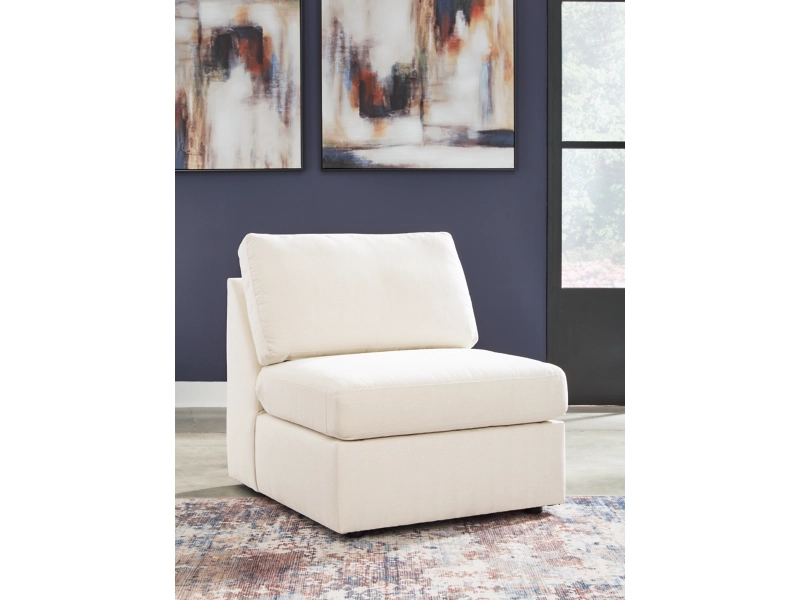 - Includes 5 modular pieces: left-arm facing corner chaise, console with audio system, right-arm facing corner chaise and 2 armless chairs