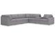 - Includes 7 modular pieces: right-arm facing corner chair, 3 armless chairs, console with storage and 2 wedges