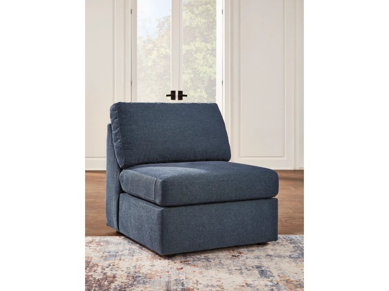 - Includes 5 modular pieces: left-arm facing corner chaise, 2 armless chairs, audio console with storage and right-arm facing corner chaise