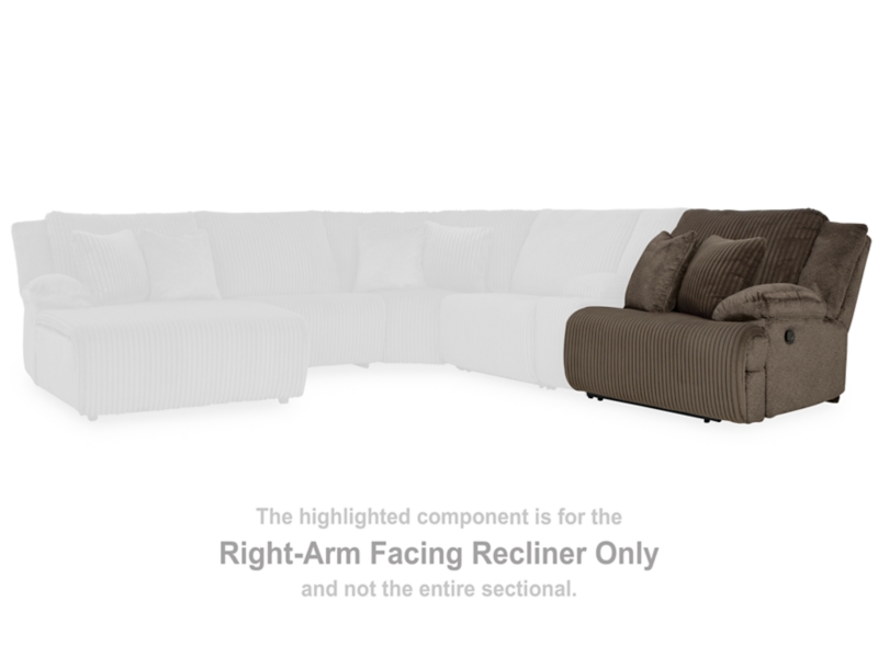 This right-arm facing recliner is made with polyester upholstery. Pairs with other items in the series to make a sectional.
