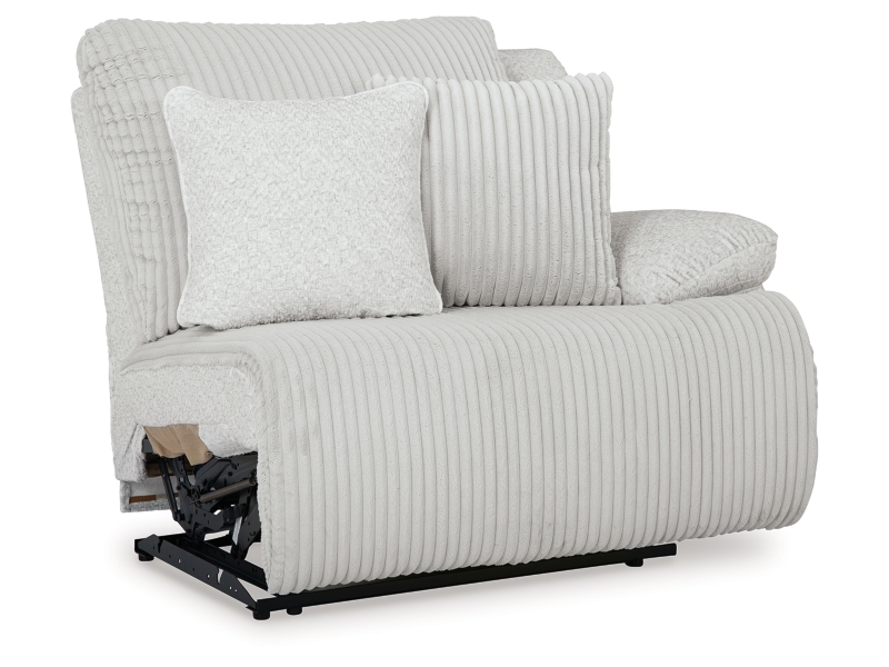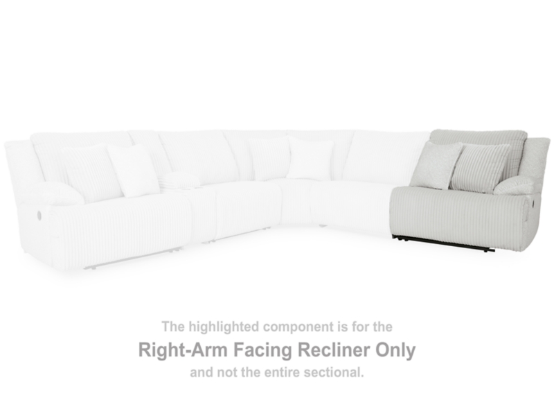This right-arm facing recliner is made with polyester upholstery. Pairs with other items in the series to make a sectional.