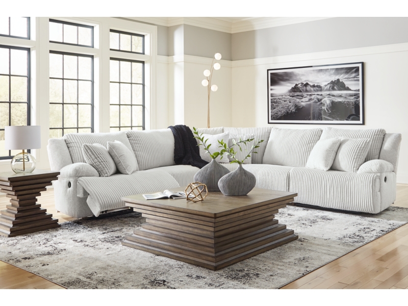 Experience unparalleled comfort with this reclining sectional. It’s a stylish and invitingly soft look—made all the more appealing by cozy corduroy cushions that feel great and add a touch of texture. The neutral hue effortlessly blends into your decor, making it a gorgeous addition to your home. So sit back and unwind in this spacious set, perfect for gatherings with friends and family.