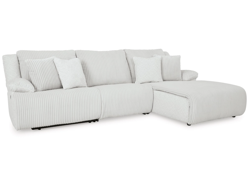 - Includes 3 pieces: left-arm facing recliner, armless chair and right-arm facing press back chaise