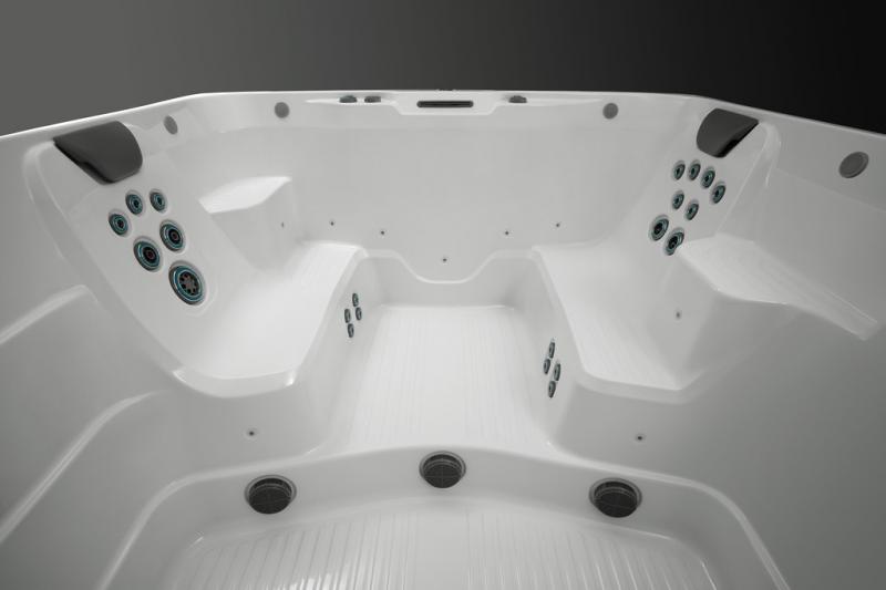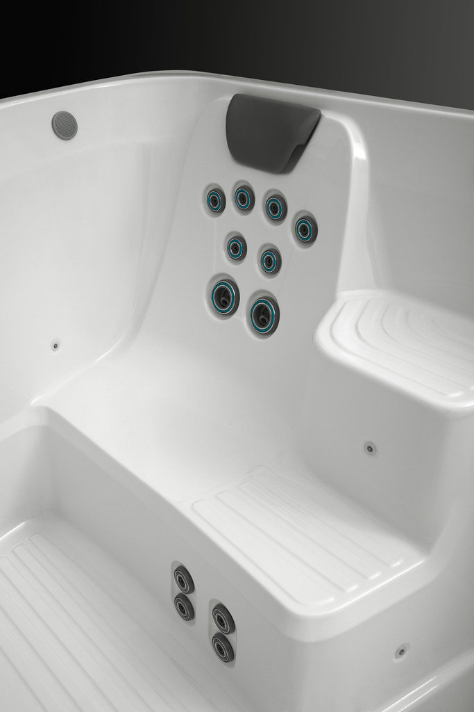 The unique arrangement of jetted seats gives you a total-body massage. Your kids will love the shallow play area, where you can keep a close watch.