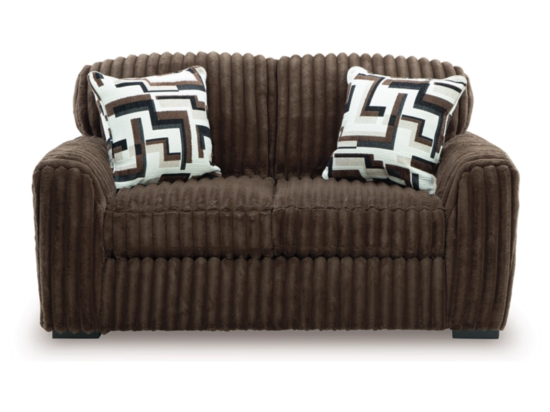 Wrapped in luxuriously soft jumbo corduroy, this loveseat takes cozy and inviting to a higher level. The sumptuous piece is perfect for unwinding after a long day, with exceptionally textured cushions that deliver pure indulgence. Now all you have to do is kick back, sink in and relax.