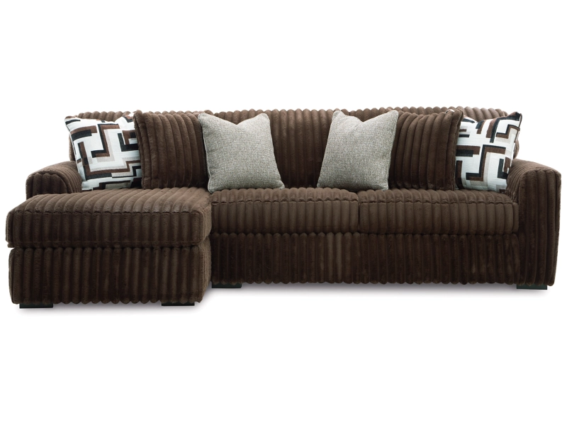 - Includes 2 pieces: left-arm facing corner chaise and right-arm facing sofa