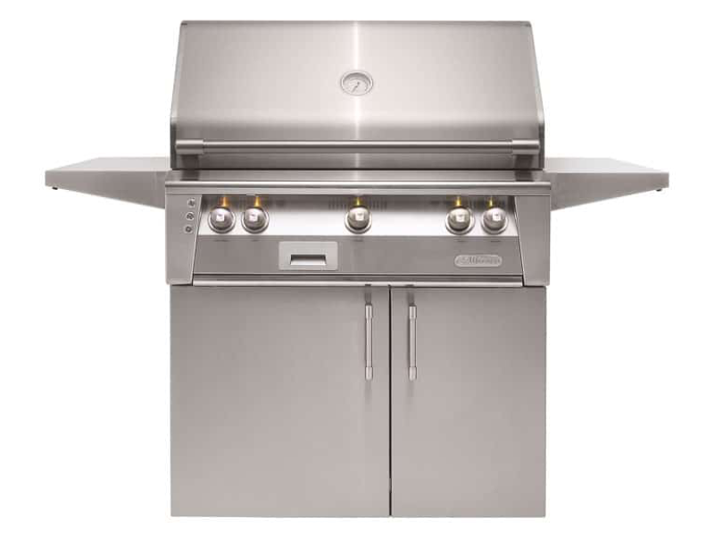 36" Alfresco Luxury Natural Gas Cart Grill with 2 Burner Rotis Smoker SearZone and Double Door Cart - ALXE-36SZC