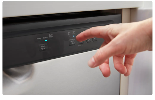 A heater boosts the water temperature during the wash cycle with the High-Temperature Wash Option. Plus, an extra rinse is added to help get those dishes clean.