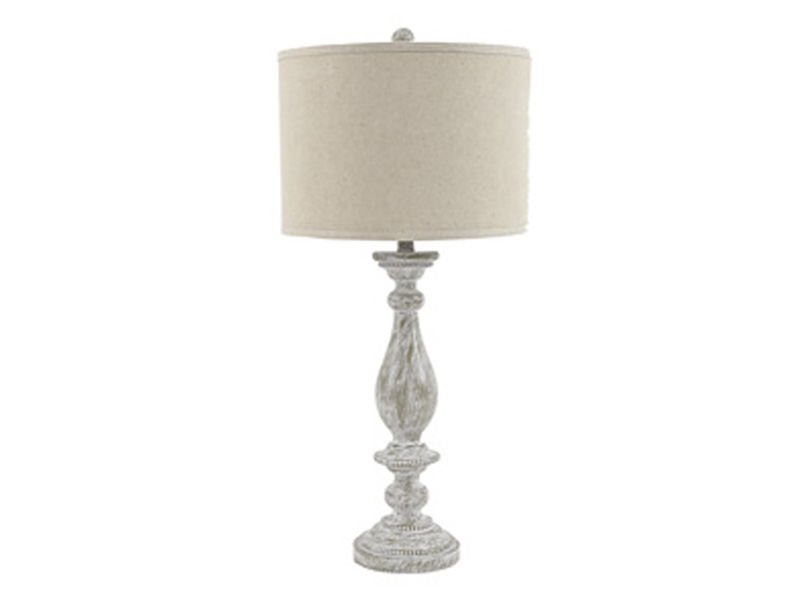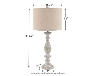 L235344 Made of cast resin with fabric drum shade;3-way switch;1 type A bulb (not included); 150 watts max or CFL 25 watts max; UL Listed;Clean with a soft, dry cloth;Assembly required