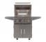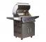 - Three cast stainless steel burners with an infrared rear burner produce 57,000 BTU total.