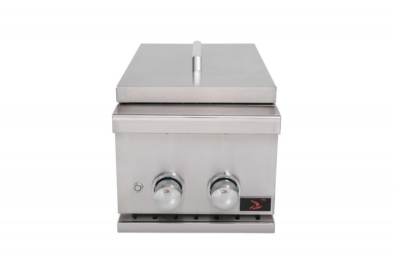 Double side burner prime for Bonfire outdoor kitchen countertop gas grill setups, Constructed with tough 304-grade stainless steel to stand up to the elements.