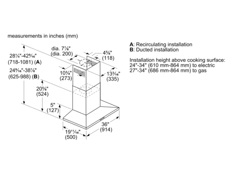 | Operating Mode | Convertable: Ducted / Recirculating |