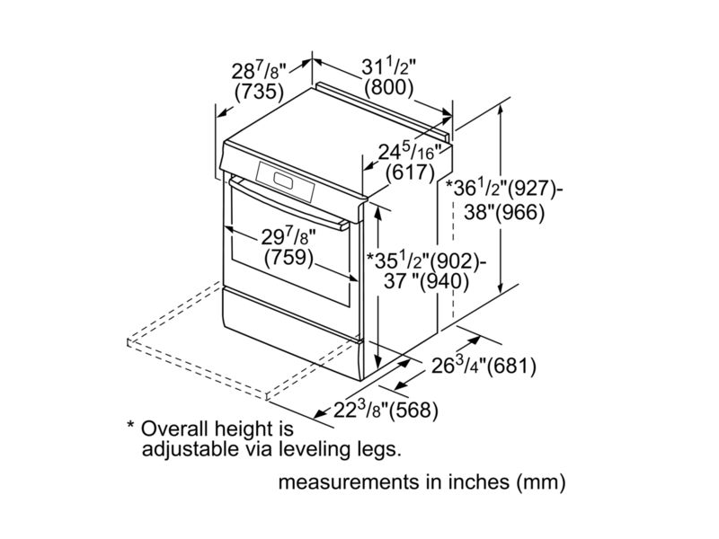 | Overall appliance dimensions (HxWxD) (in) | 36 1/2" x 31 1/2'' x 29 3/16" |